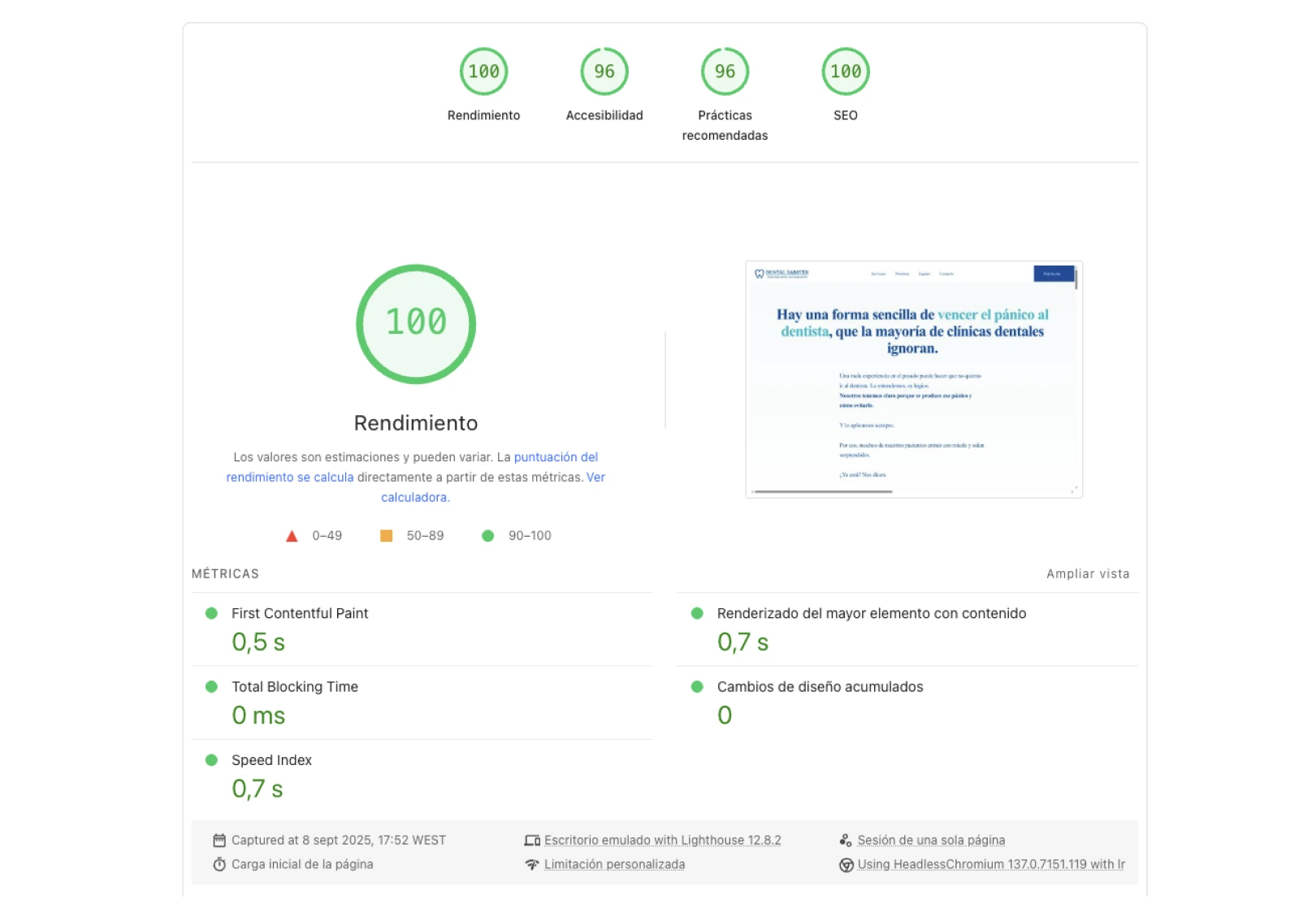 Web optimizada rápida para mejorar el SEO y la experiencia de usuario.